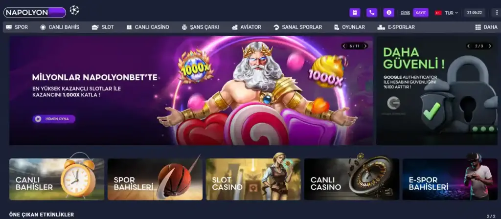 2002 yılından beri faaliyetlerini sürdüren platformda pek çok farklı spor dalına bahis yapabilirsiniz. Bununla beraber canlı bahis seçeneği anlık bir şekilde bahis yapma fırsatını sunmaktadır. Casino seven oyuncular için de çok sayıda farklı oyun seçeneği vardır. Blackjack, poker, rulet, slot oyunları ve birçok farklı oyun seçeneğini burada bulabilirsiniz. Gerçek kumarhane atmosferini yakalamak istiyorsanız bunun için Napolyonbet gerçekten harika seçenekleri sizlere sunmaktadır. 7-24 canlı destek hattı ve finans departmanından hizmet alabilirsiniz. Bu konuda kesintisiz bir hizmet veren platform kullanıcılarının güvenliğini ön planda tutarak tüm hizmetlerini vermektedir. En son bahis teknolojilerini takip eden ve buna hizmetlerine yansıtan platformda her şey yüksek müşteri memnuniyeti için sağlanmaktadır. Burada tüm üyeler için her zaman güvenilir ve kaliteli bir ortamda hizmet verilmektedir.
